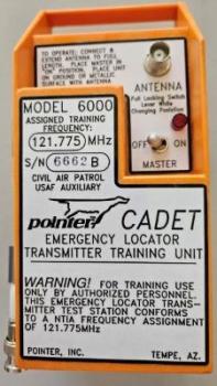 The Model 6000 originally was assigned a 121.600 Mhz frequency. A retro fit to the new 121.775Mhz can be done at the factory. Also, for home made battery packs, we suggest a maximum of 8 volts for supply. A battery pack consisting of 5 alkaline "C" cells would supply 7.5 volts. Typical output signals from trainer units are of 150mw range at 7.5 volts supply. To achieve a simulated ELT with a broken antenna or low power, don't extend telescopic antenna or use 4 "D" cells to produce a 6 volt supply voltage.
