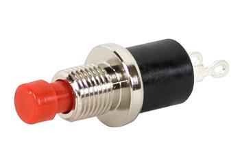 (DISCONTINUED) PUSHBUTTON SWITCH/SPST (single pole single throw), hole mount, off-(on), momentary push, red